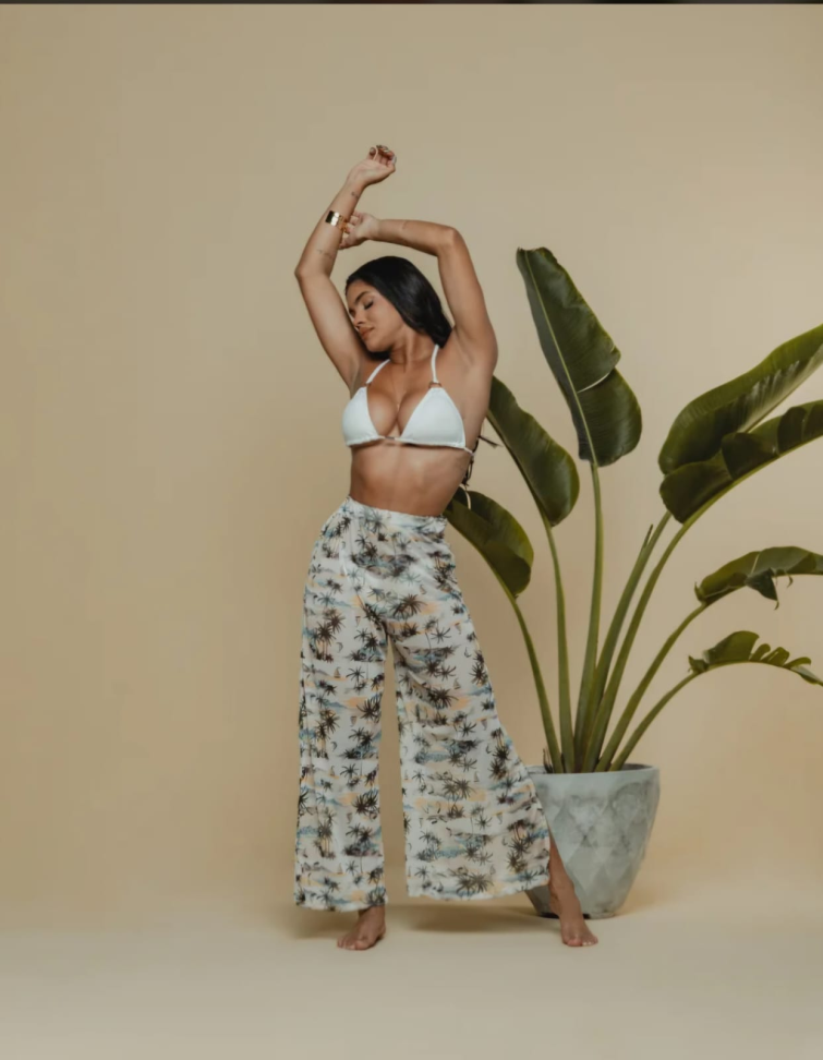 Calça pantalona amarração